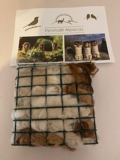 You’ll have a bird feeder filled full of alpaca fleece for the birds to take away and make their nest with.